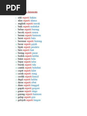 Senarai Bandingan Semacam. Maksud dan contoh ayat k. Perbandingan semacam pada umumnya digunakan dengan perkataan macam seperti bagai dan laksana.